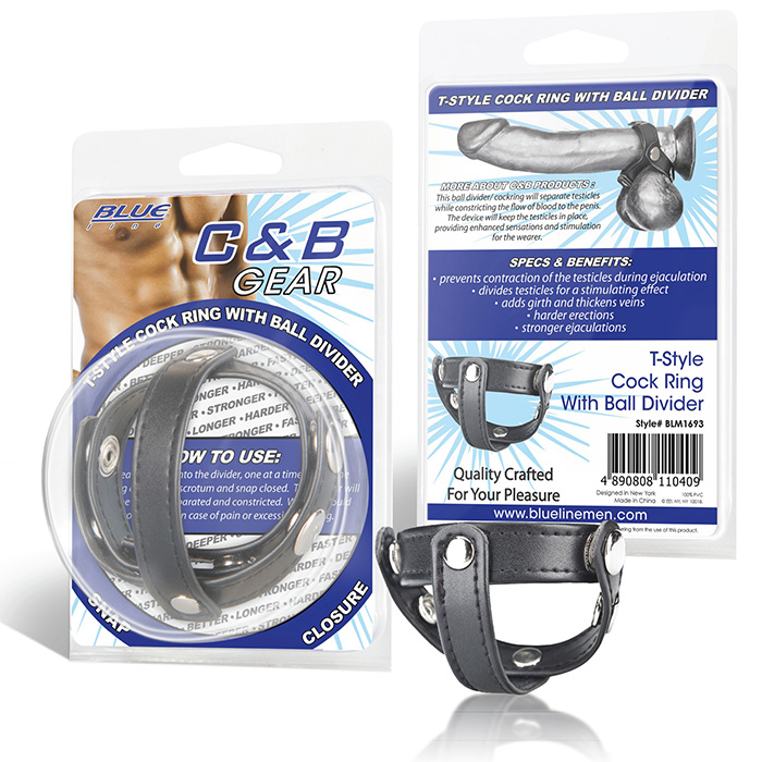 Эрекционное Т-образное кольцо из качественной искусственной кожи, зажимающее пенис и мошонку одновременно, а также разделяя яички. Подобное кольцо предотвращает сокращение мошонки во время эякуляции, стимулирует яички, а также пролонгирует эрекцию, добавляет дополнительный объем пенису, утолщая вены, и усиливает оргазм. Диаметр можно варьировать от 3,5 см. до 5 см. Упаковка: Блистер.